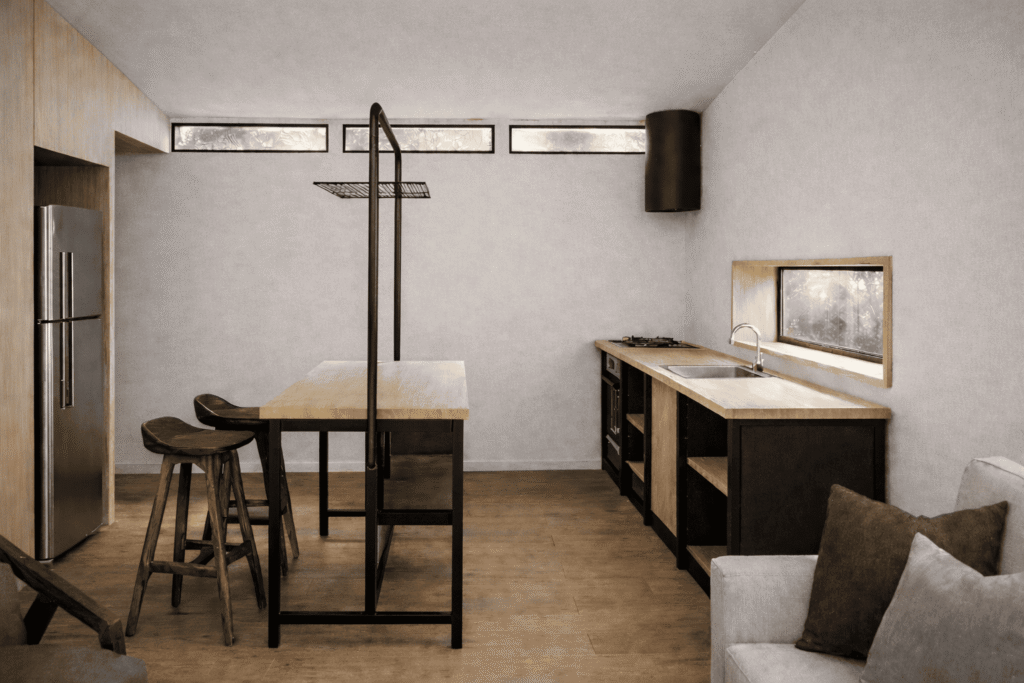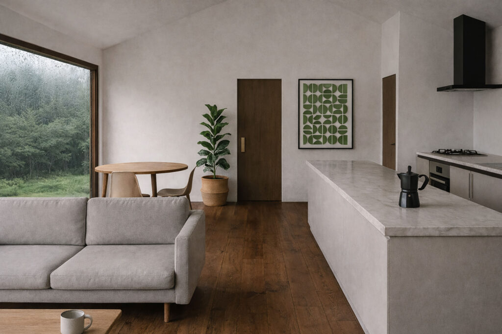 Proyecto de arquitectura en las afueras de Valdivia, concebido desde la orientación, el clima y las condiciones reales del terreno. Un espacio contenido y bien dimensionado, ajustado al presupuesto, que responde a exigencias térmicas, al confort cotidiano y a las rutinas de la familia, mediante una arquitectura limpia, funcional y contemporánea.
